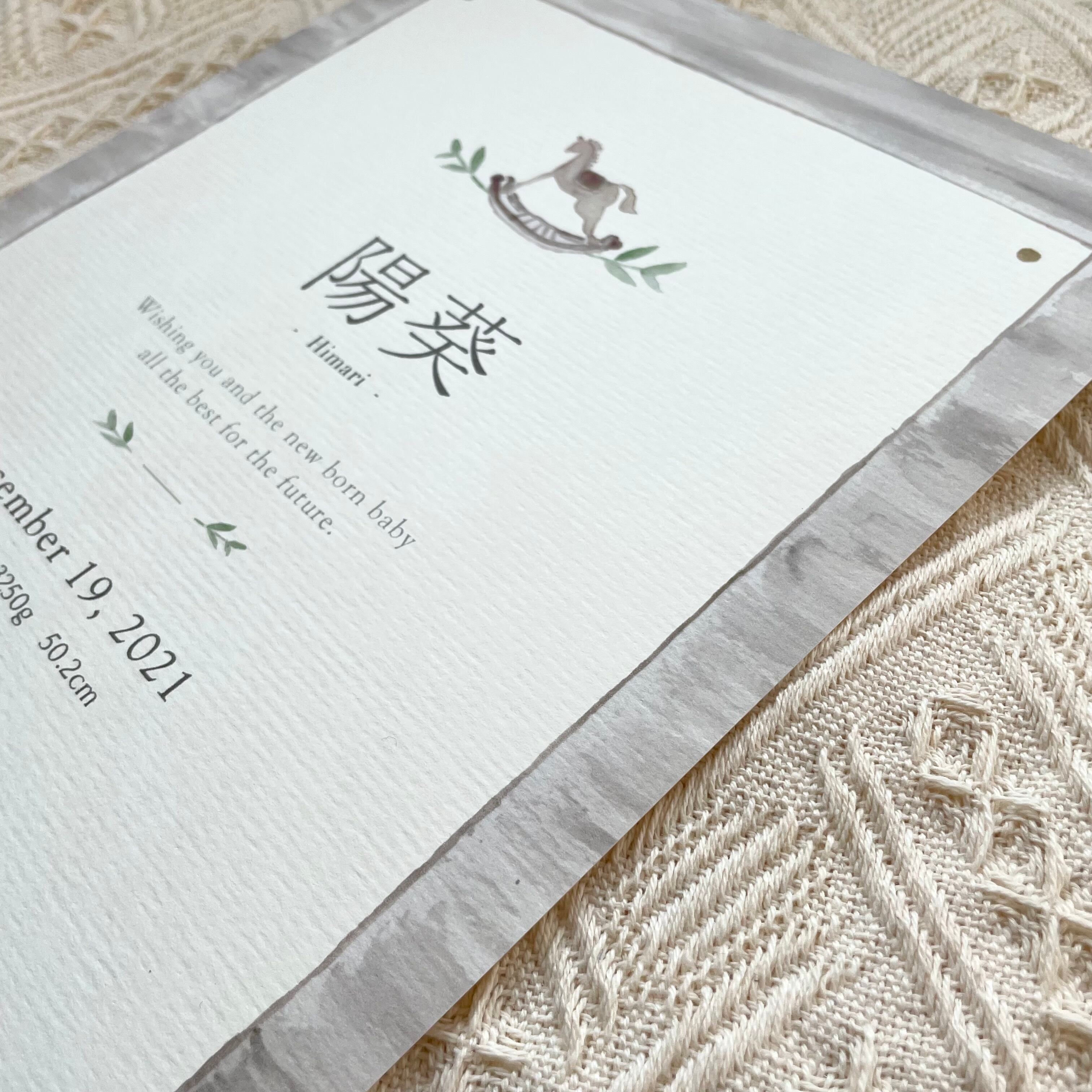 インテリアに馴染む命名書です。