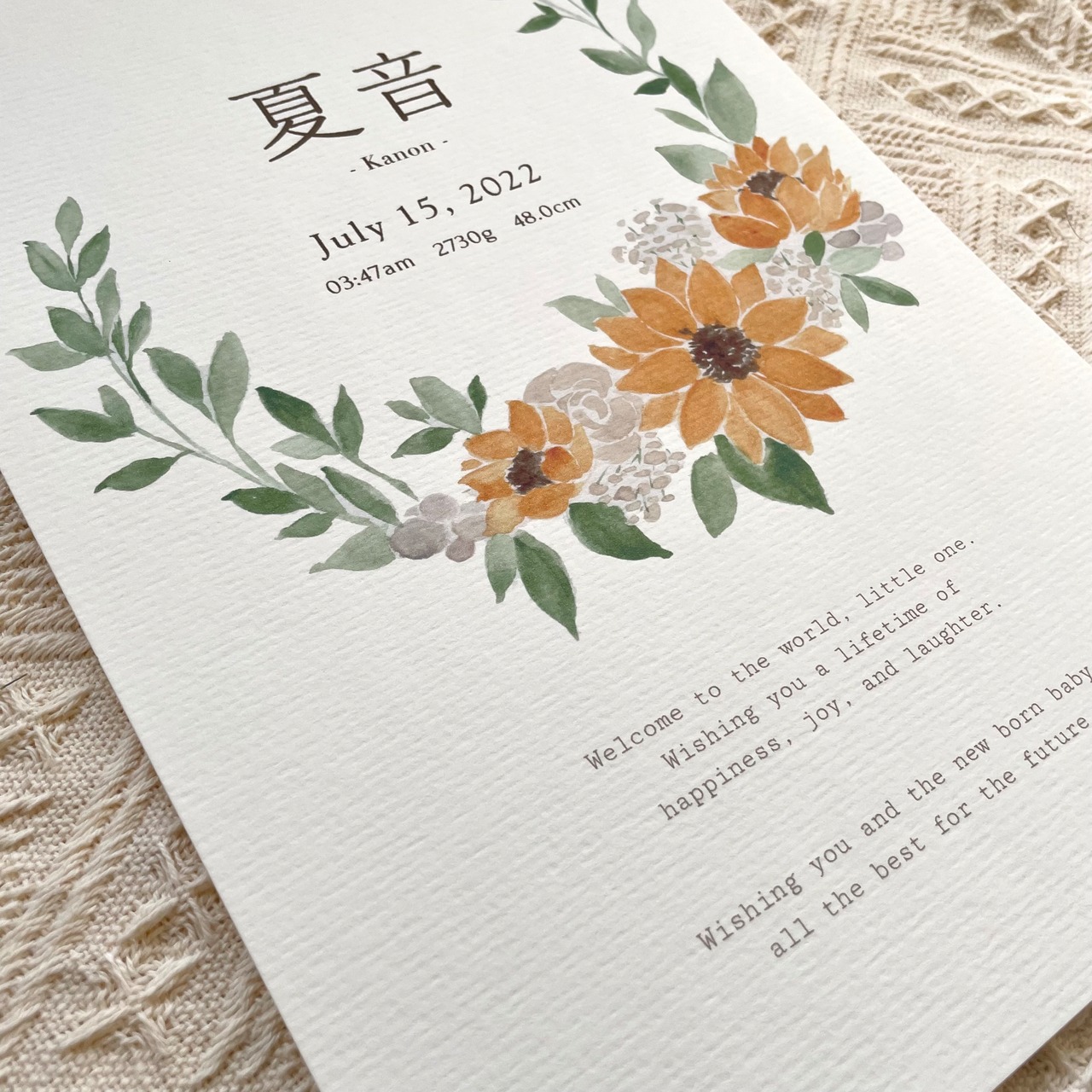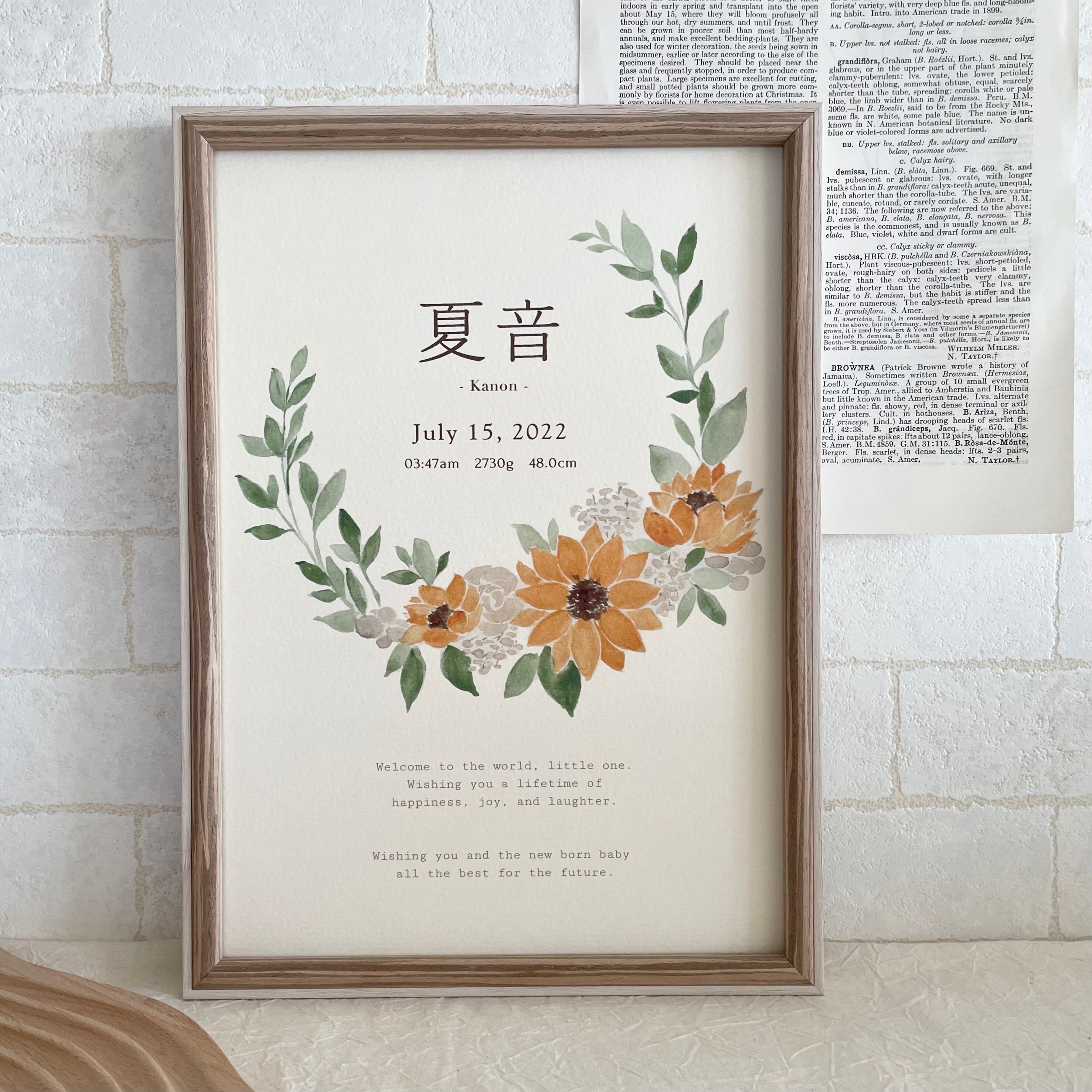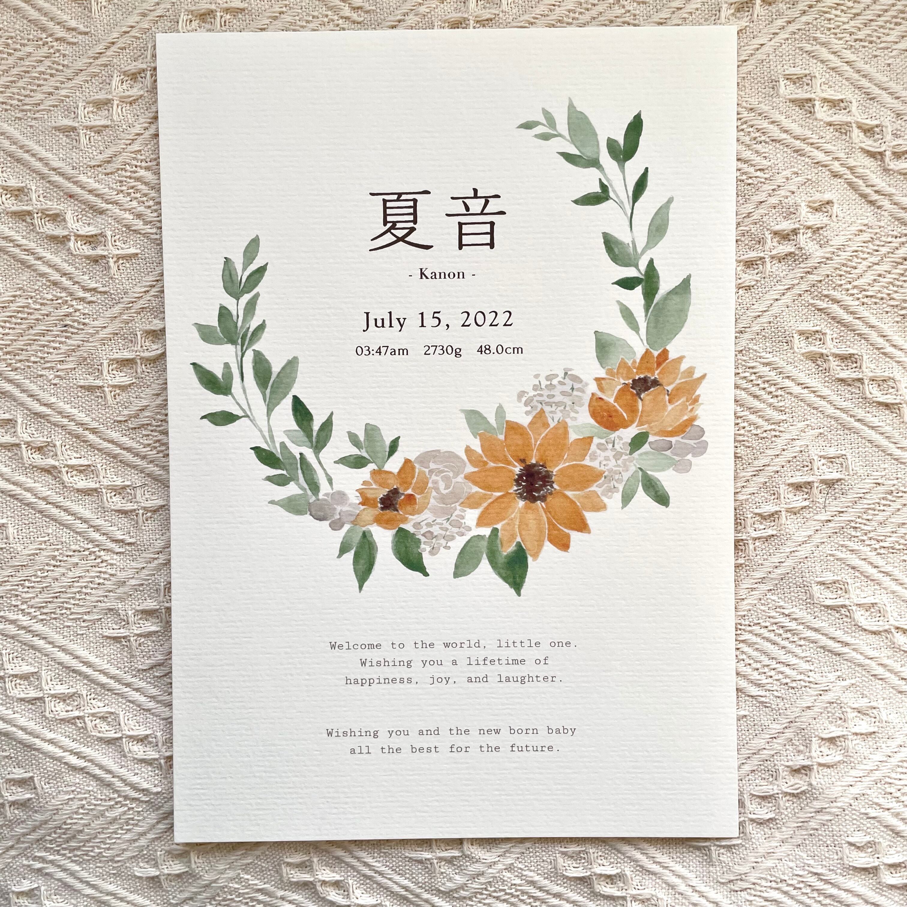 baby poster【sunflower】/ 漢字表記 / 命名書