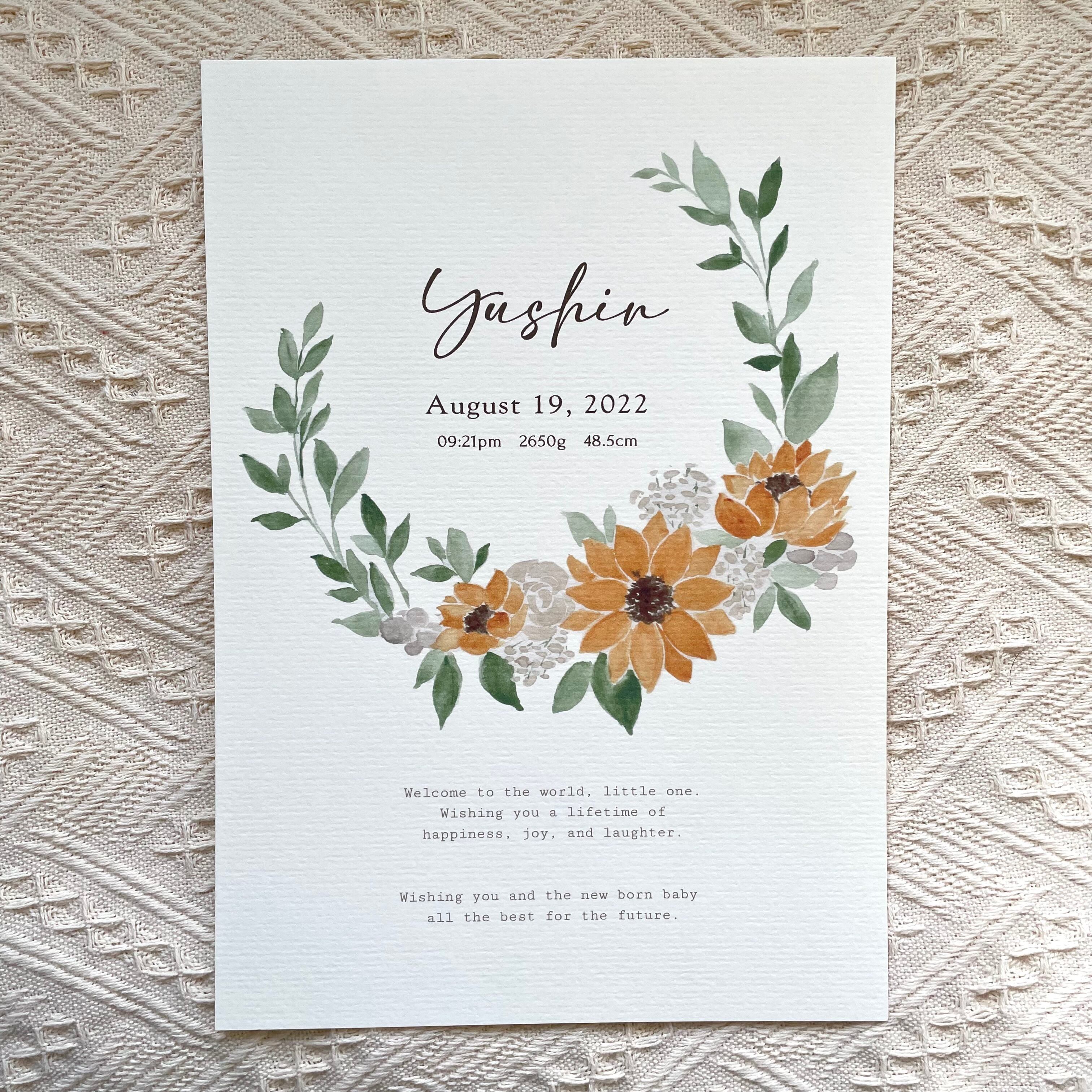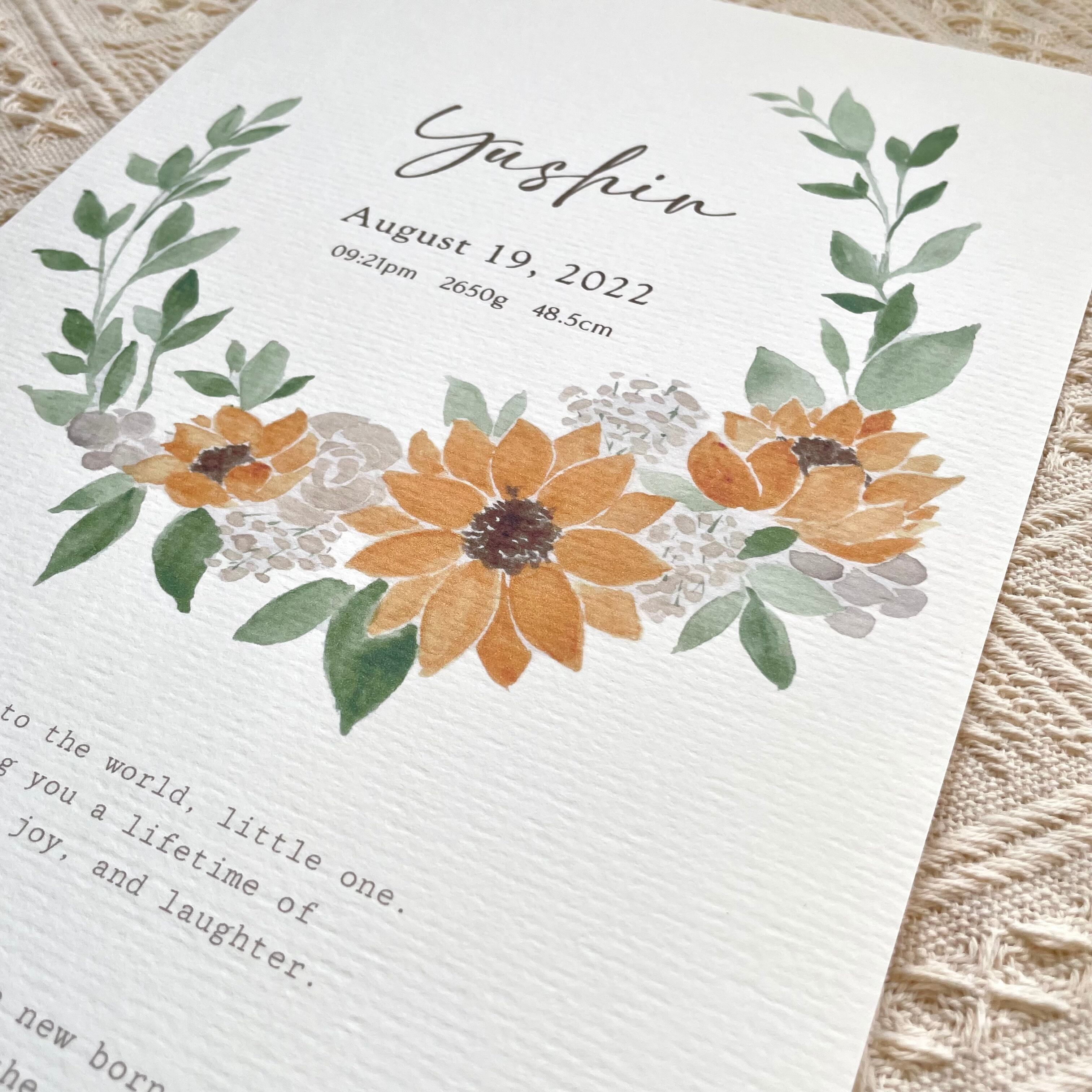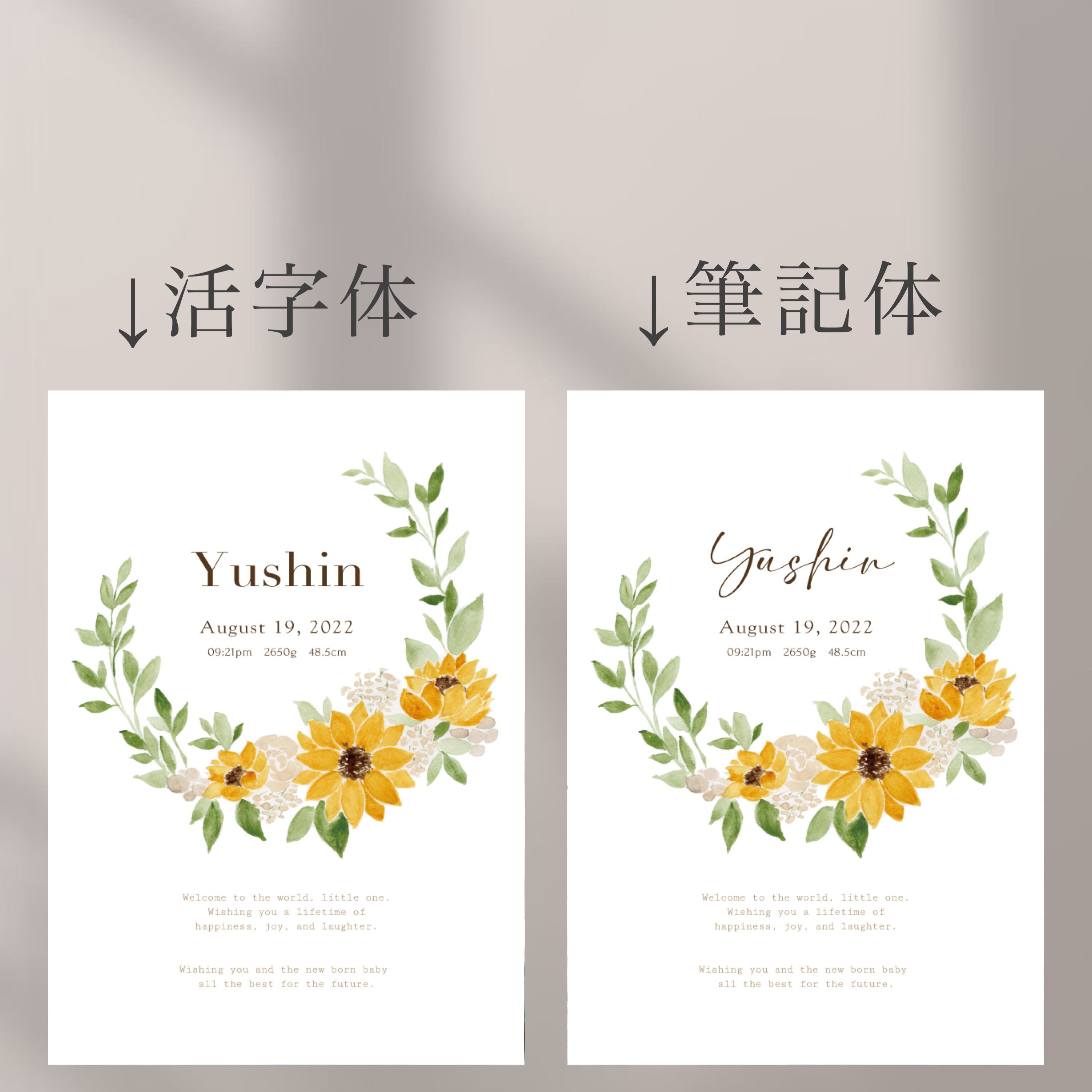 baby poster【sunflower】/ ローマ字表記 / 命名書