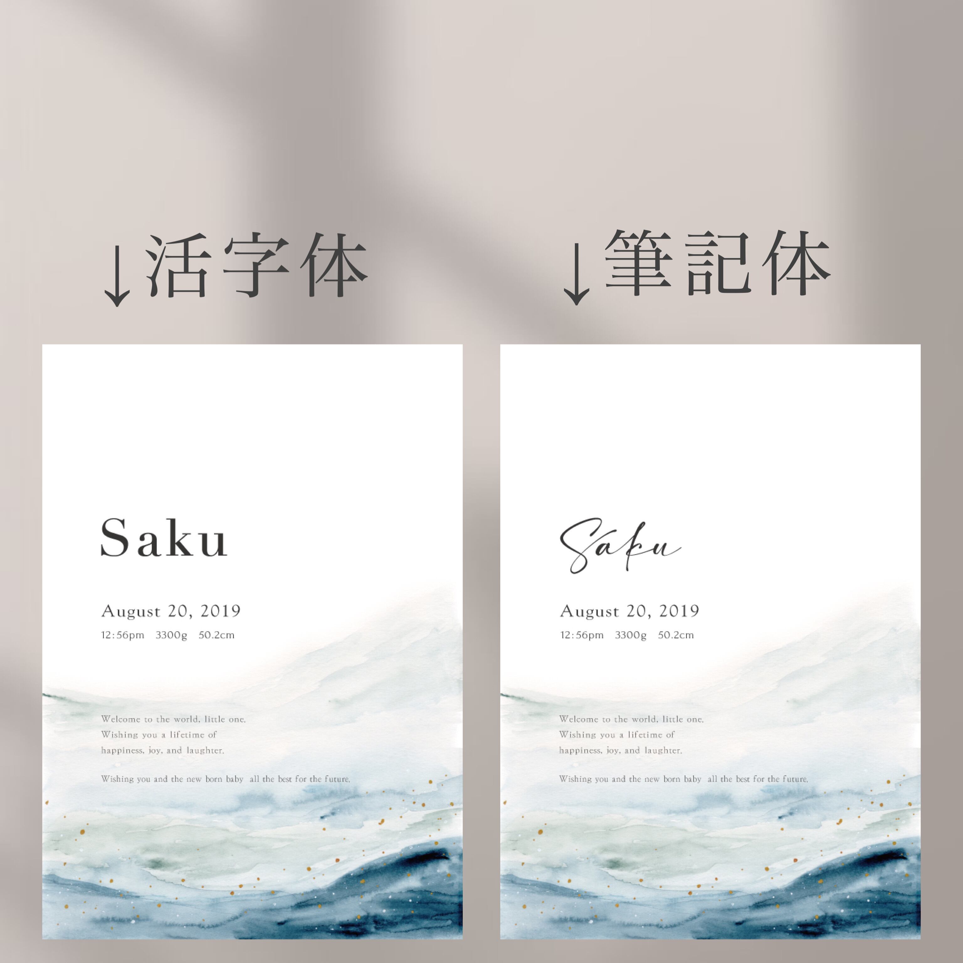 インテリアに馴染む命名書です。