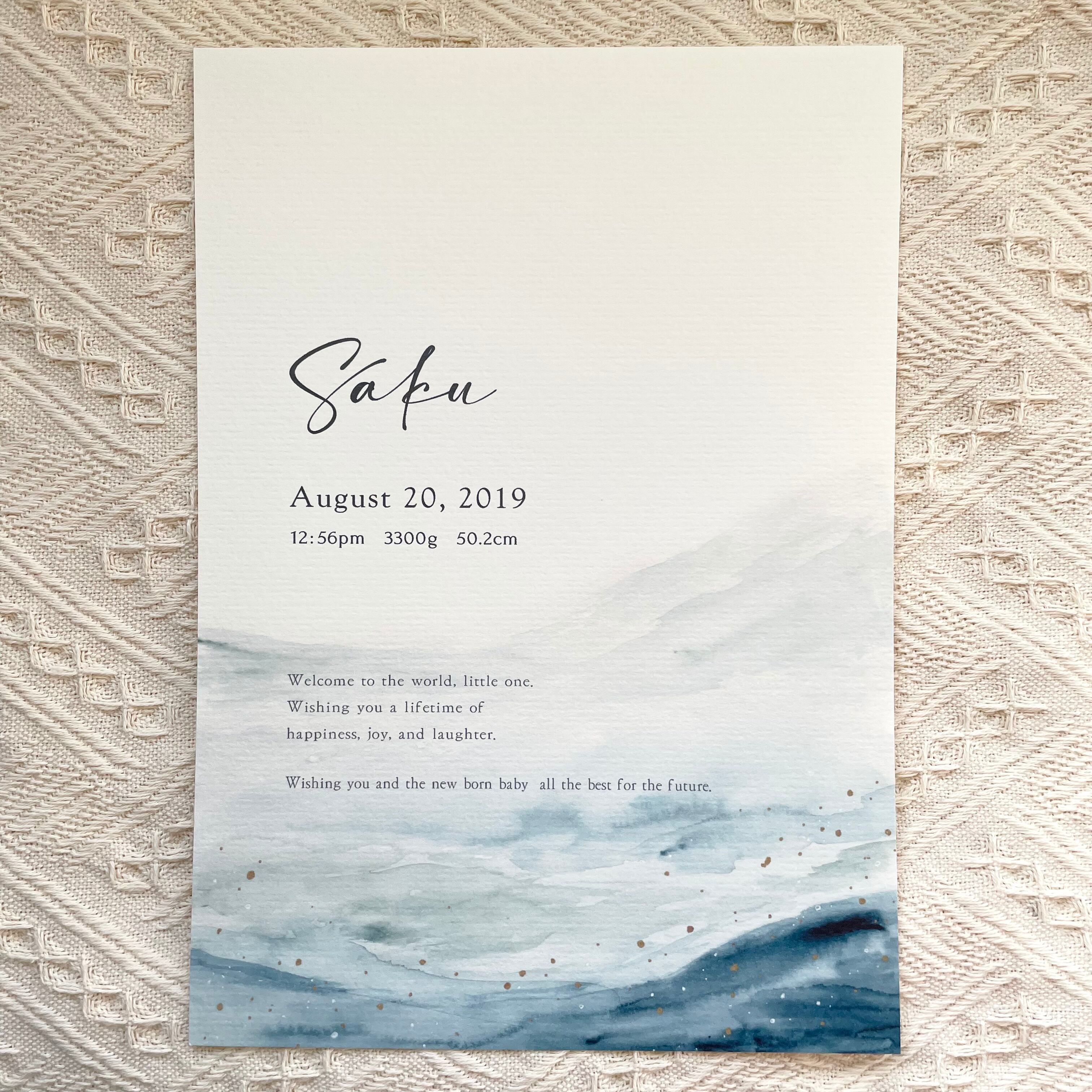 baby poster【blue】/ ローマ字表記 / 命名書