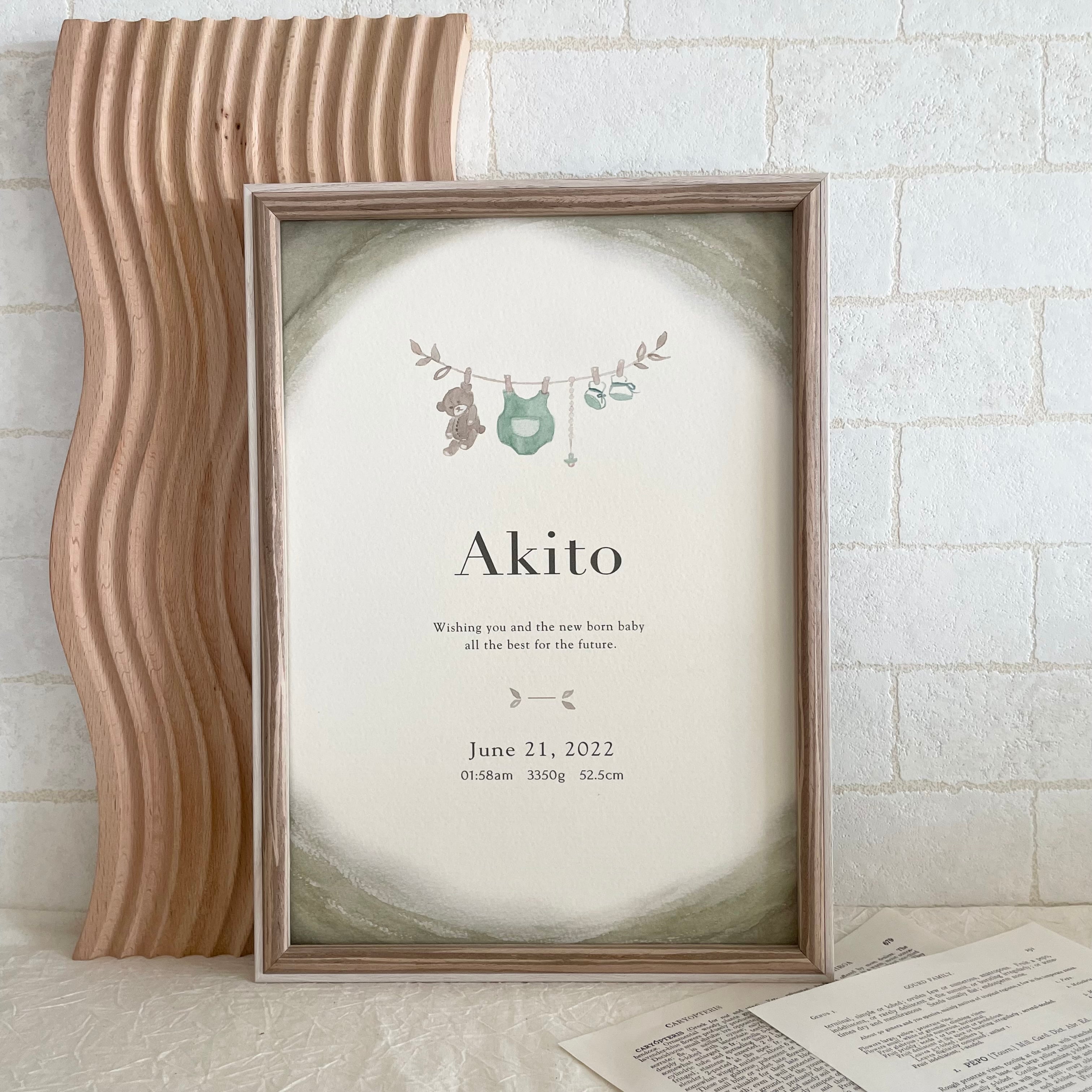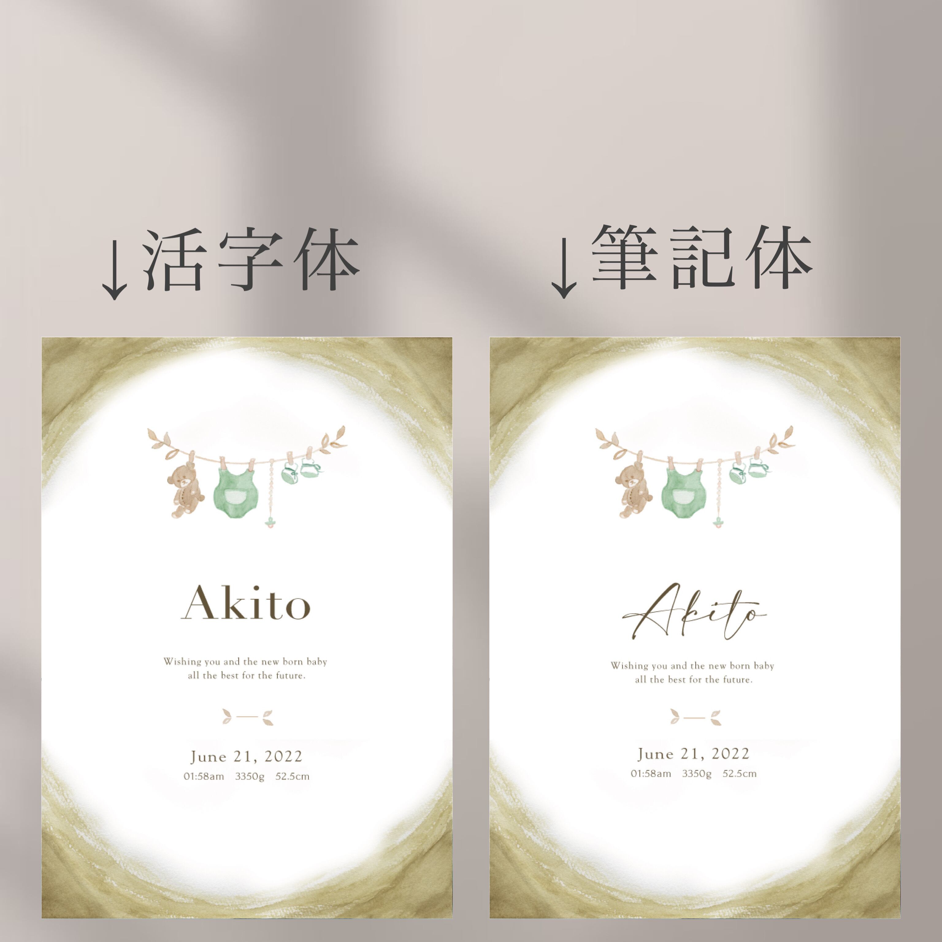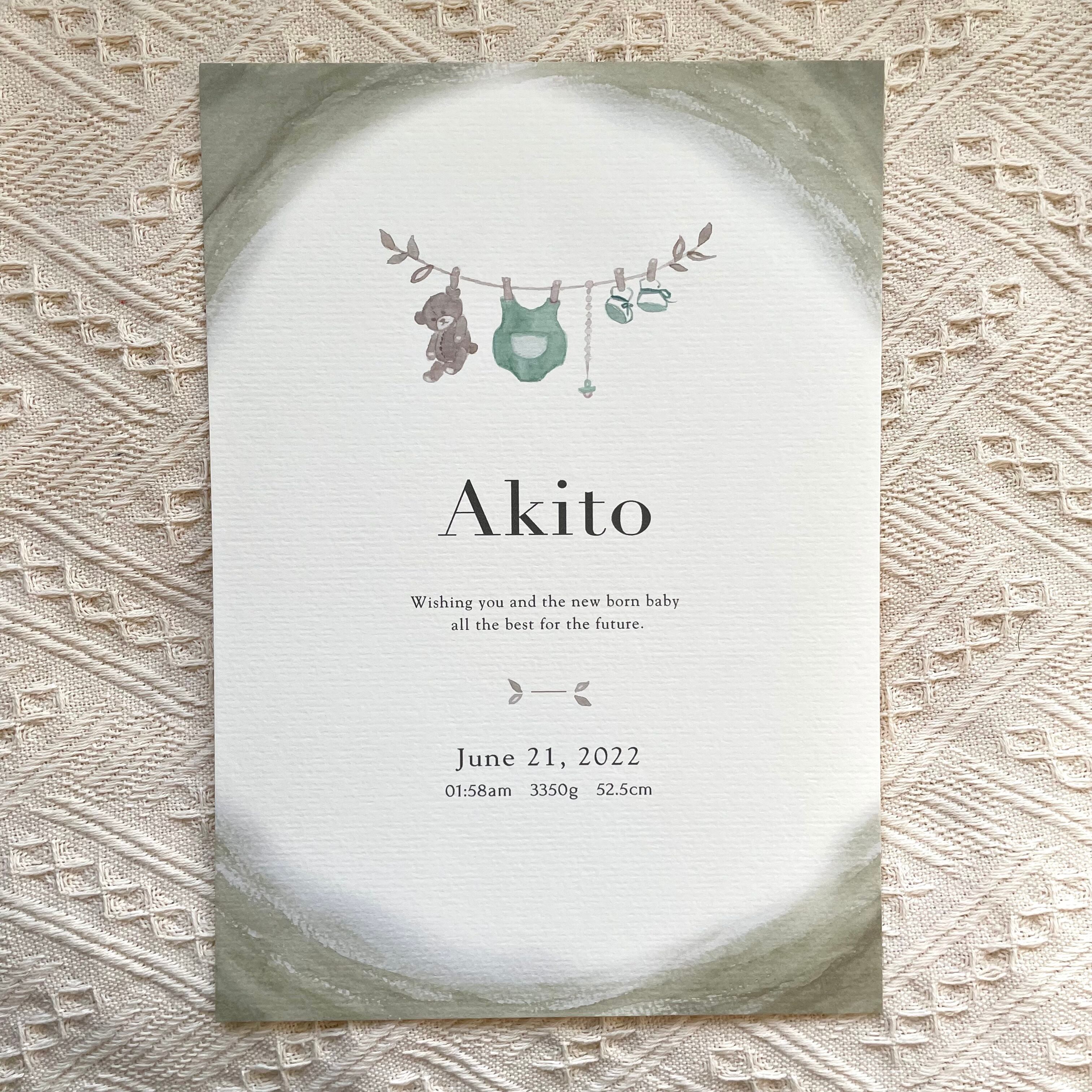baby poster【welcome baby green】/ ローマ字表記 / 命名書
