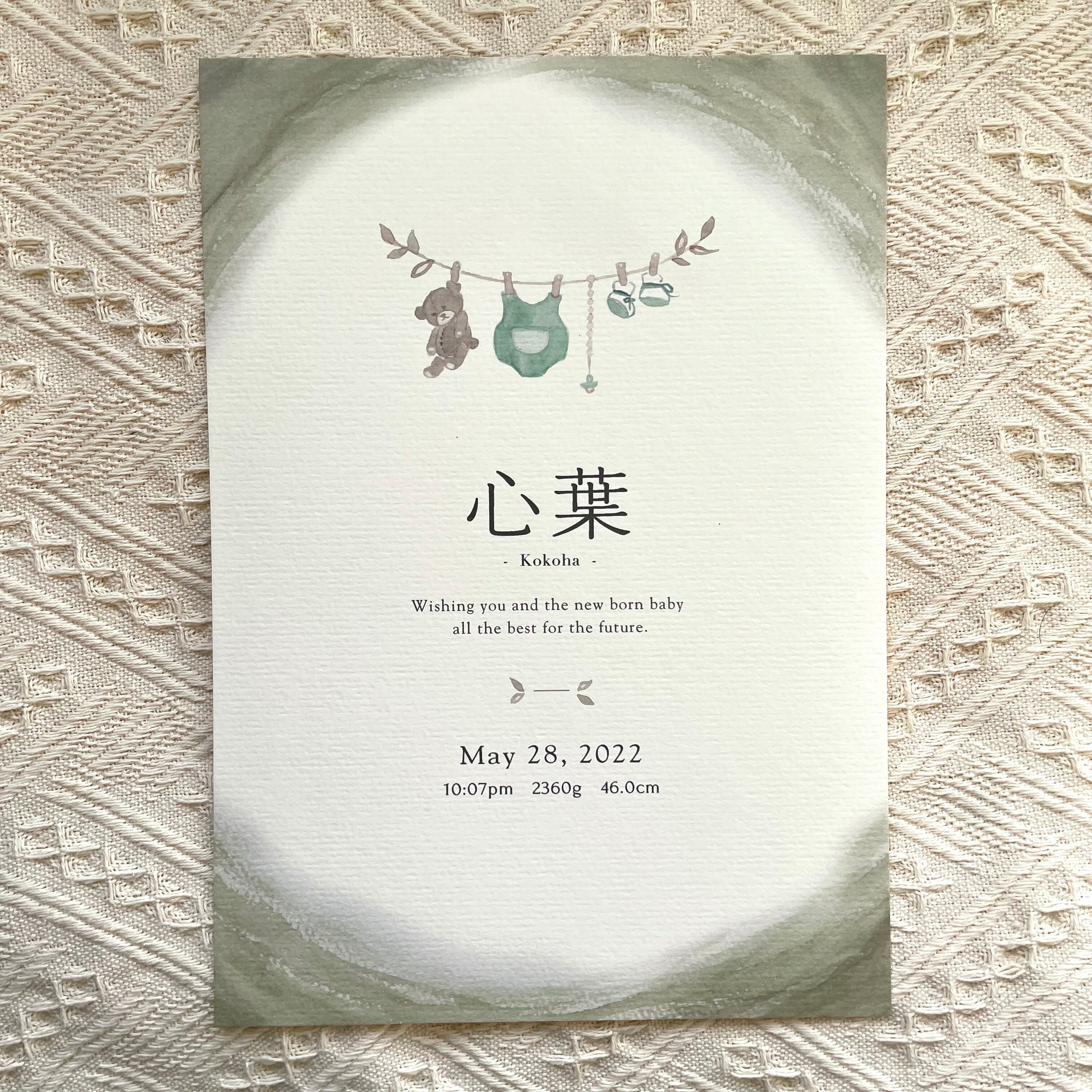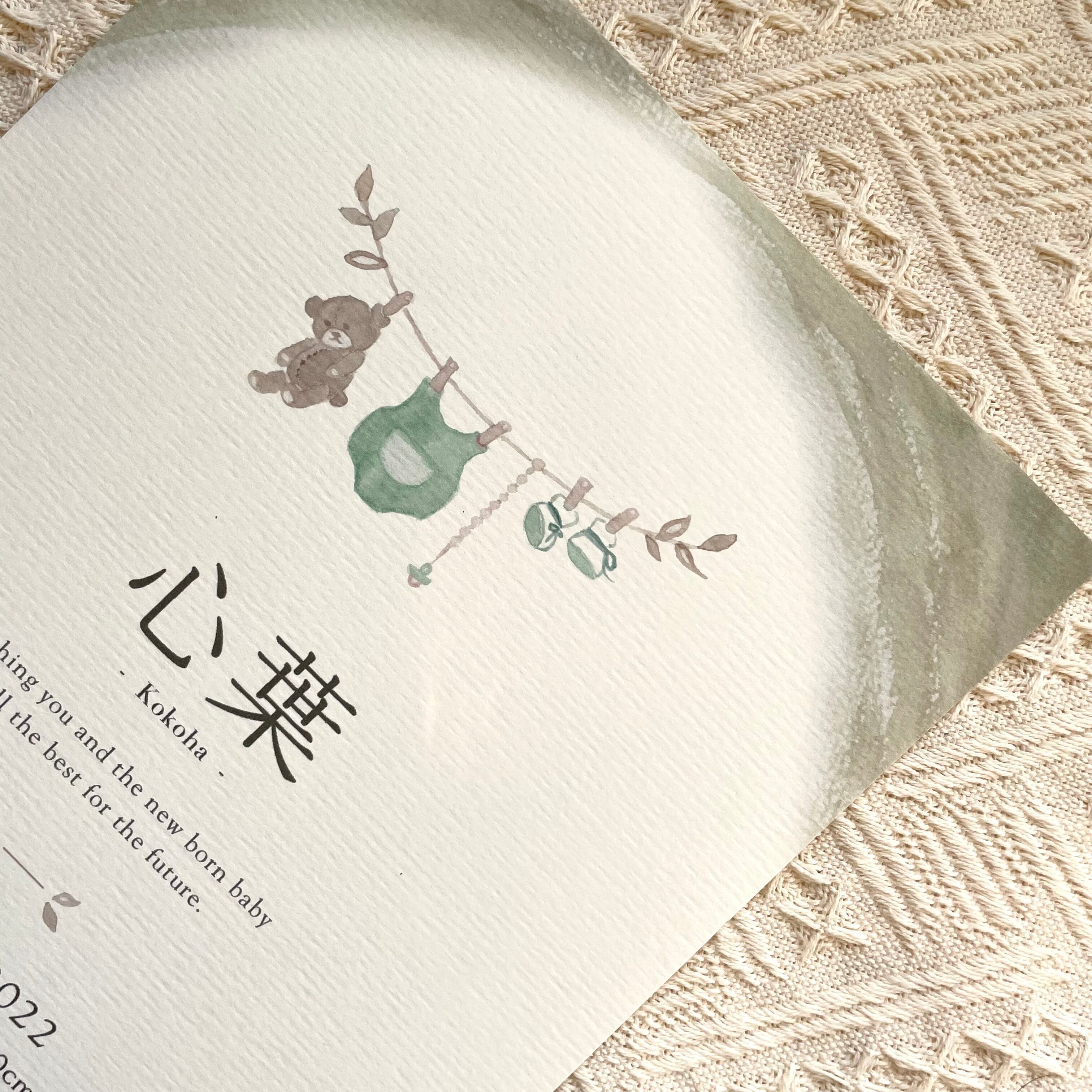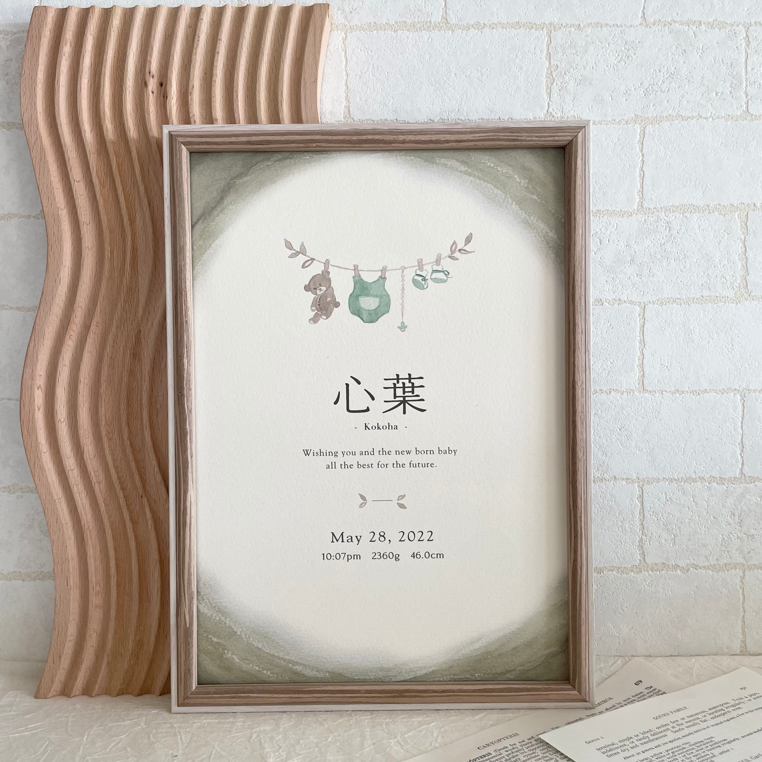 baby poster【welcome baby green】/ 漢字表記 / 命名書
