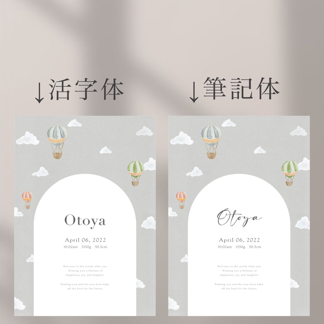 baby poster【Arch and Balloons】/ ローマ字表記 / 命名書