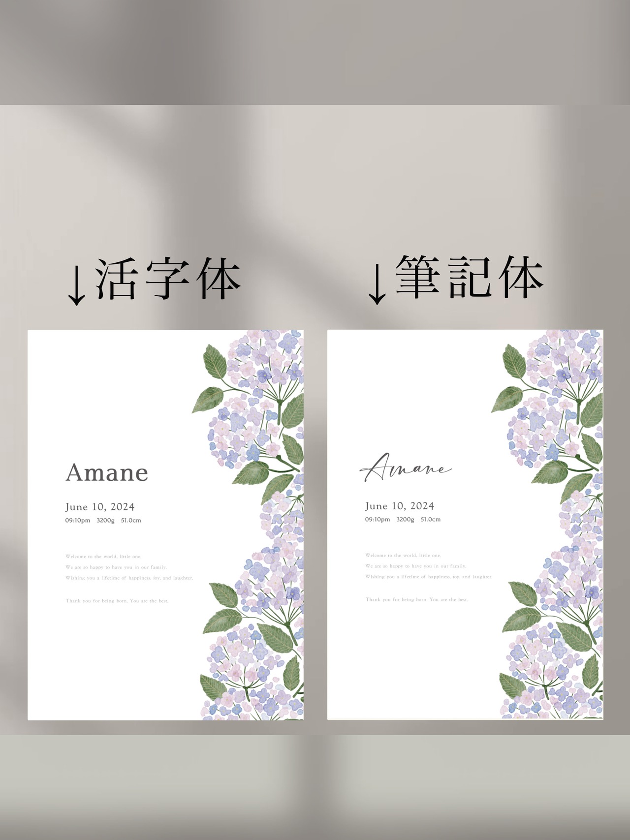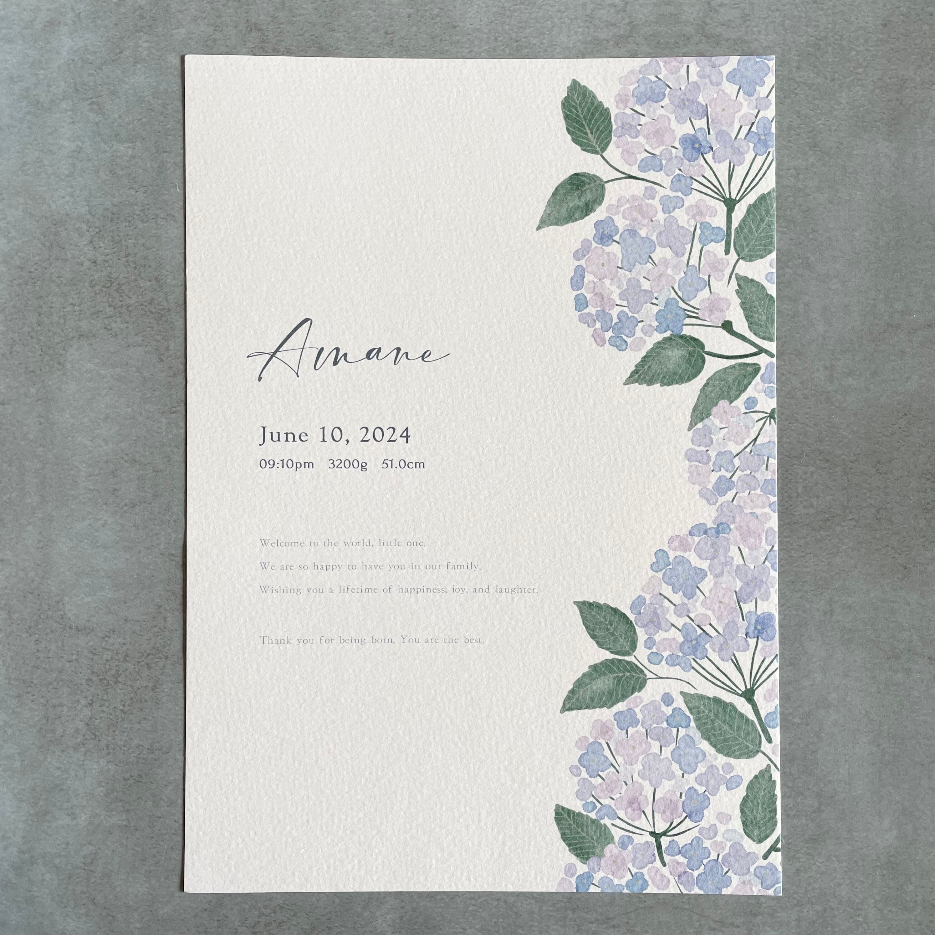 baby poster【hydrangea】/ ローマ字表記 / 命名書