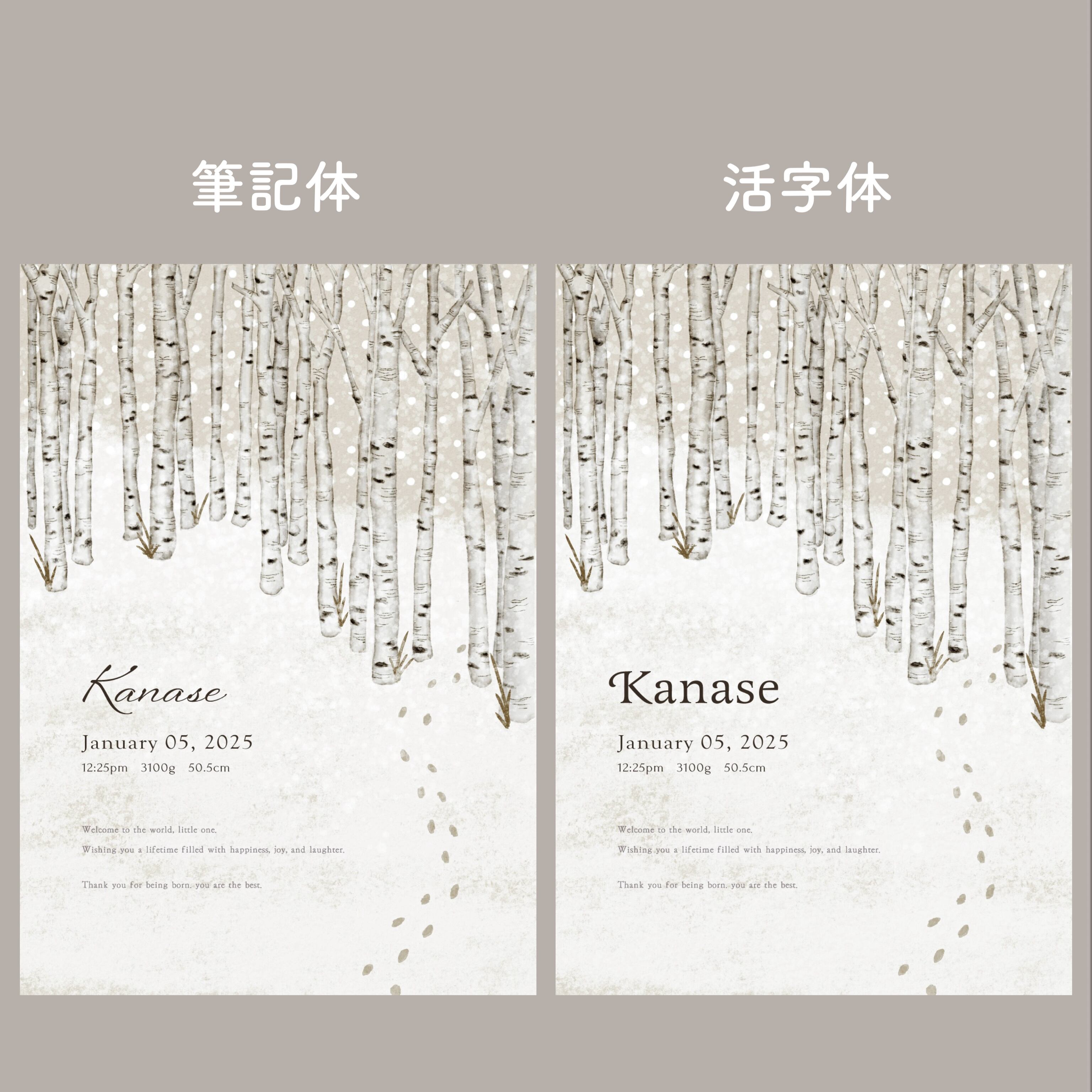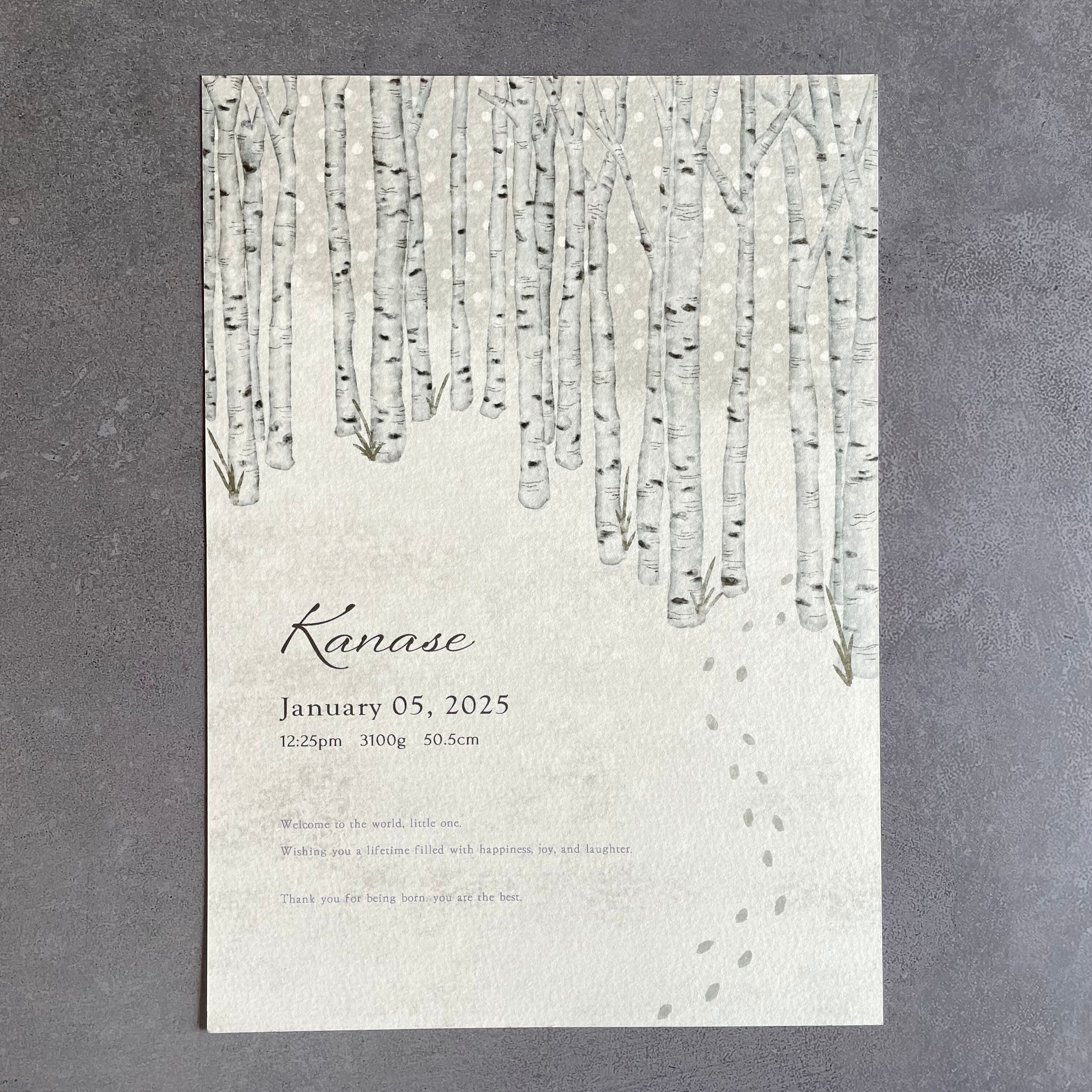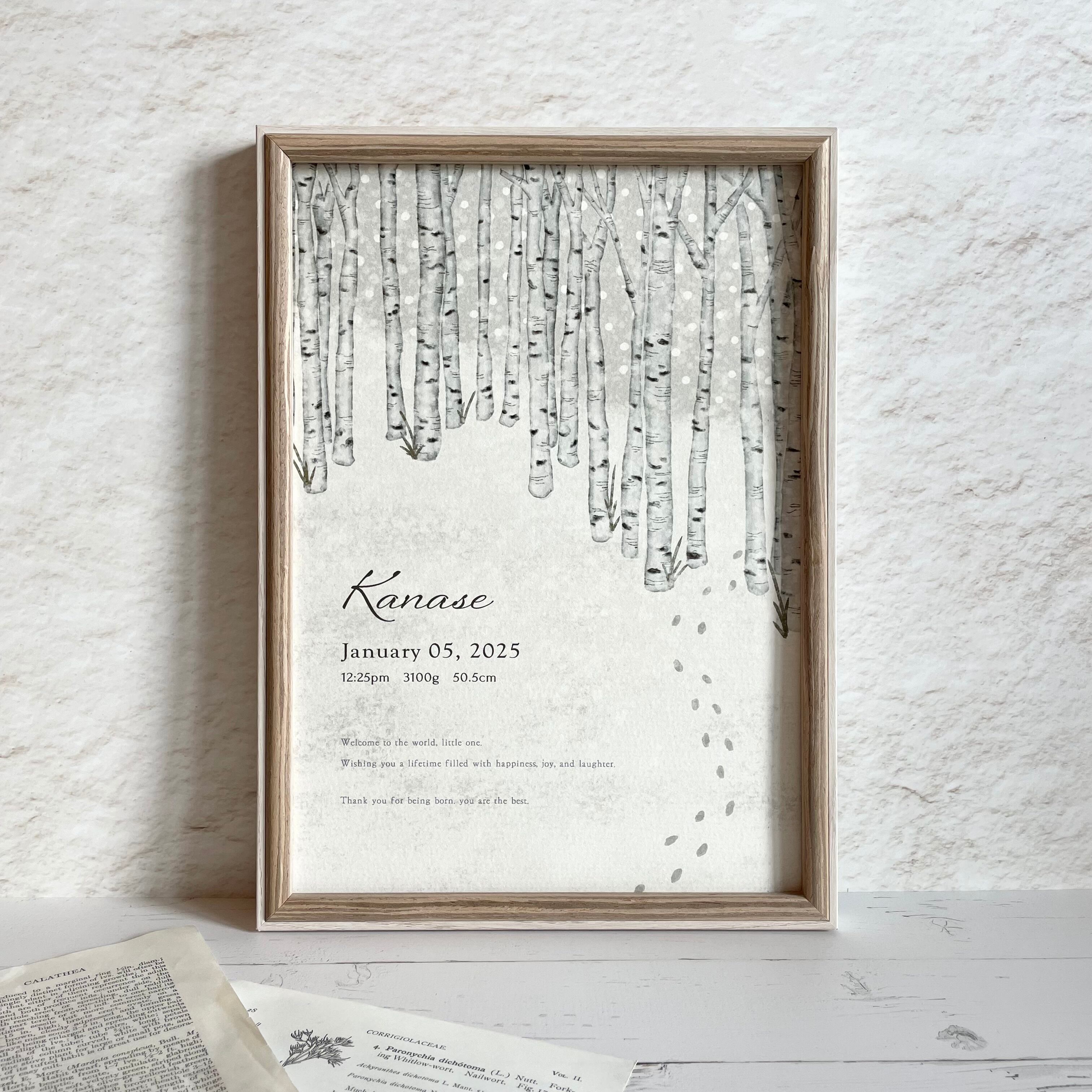 baby poster【white birch】/ ローマ字表記 / 命名書